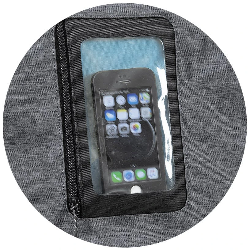 - Im Deckel integriertes Smartphone-Fach mit Bedienfenster
