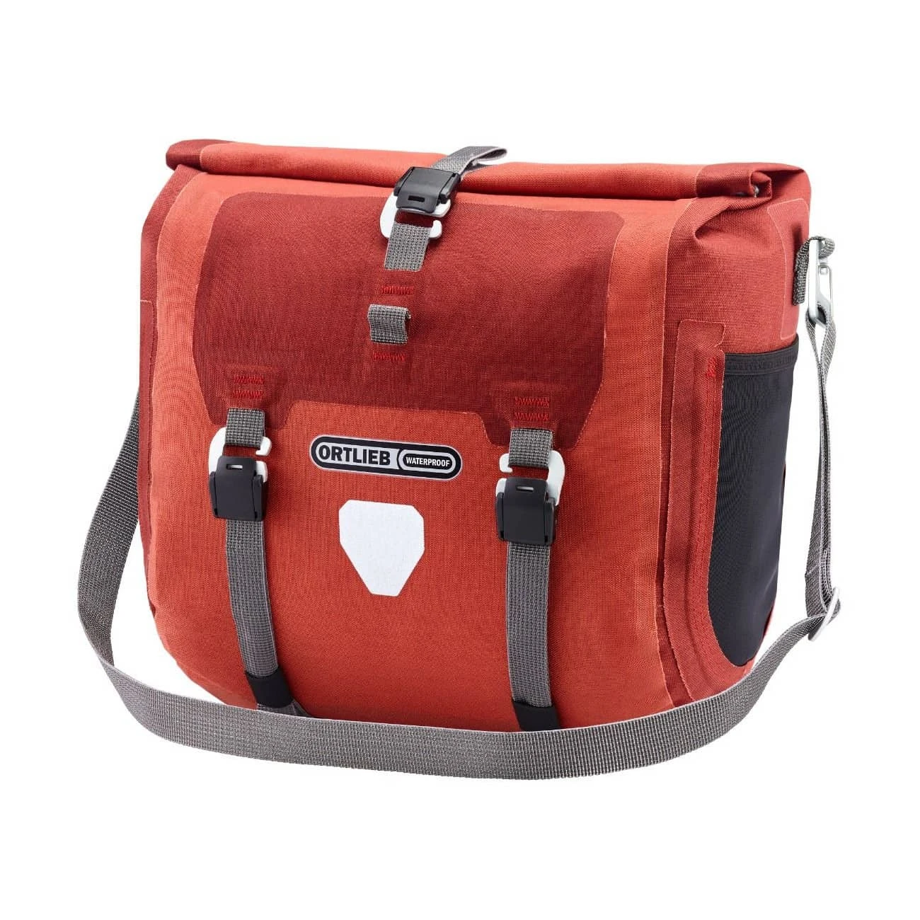 - Reflektierendes Ortlieb Logo und 3M Scotchlite Reflektor an der Front
